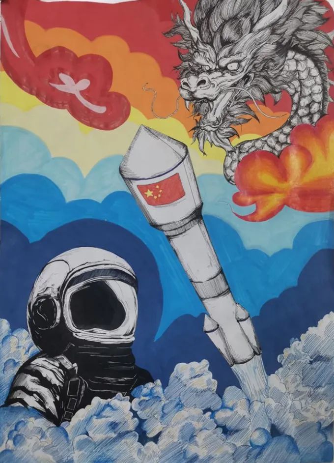 在以“寰宇寻梦,描绘九天”为主题的科技绘画展中,各班热爱艺术和科学的孩子们迅速组队。大家以国家航空航天的成就和对未来的展望为依托,展开丰富的想象力,以一幅幅鼓舞人心的作品将科技节的氛围感拉满。