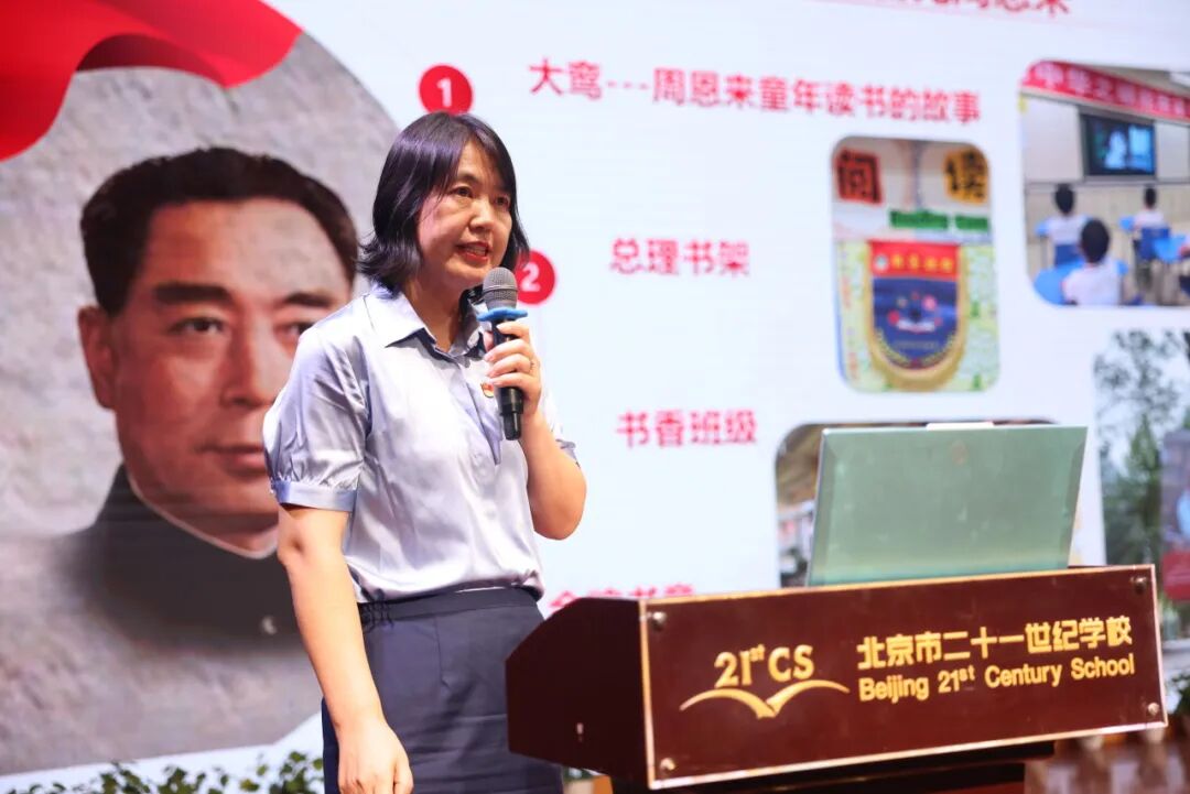 李翠玲老师以“汇聚名人精神,打造特色育人品牌”为主题分享在班级文化建设上的实践,旨在为学校其他世纪名人班提供可复制经验。演讲之初,李老师先为大家介绍了基本信息,例如该班级成立于2020年,有专属班徽、班旗、班歌,在班级文化建设中为学生搭建精神灯塔,让“为中华之崛起而读书”成为学生成长底层逻辑,采用“浸润、内化、践行、传承”四阶育人模型。在启蒙式教导过程中,李老师细致解读了团队采用的多元实践方针:通过观看动画了解精神;借演讲、知识竞赛、辩论赛实现精神内化;与敬老院结对开展志愿服务践行精神;以研学、栽种银杏树传承精神。而这些真正做到了让名人班建设超越标签化,唤醒学生主体性的灵魂。