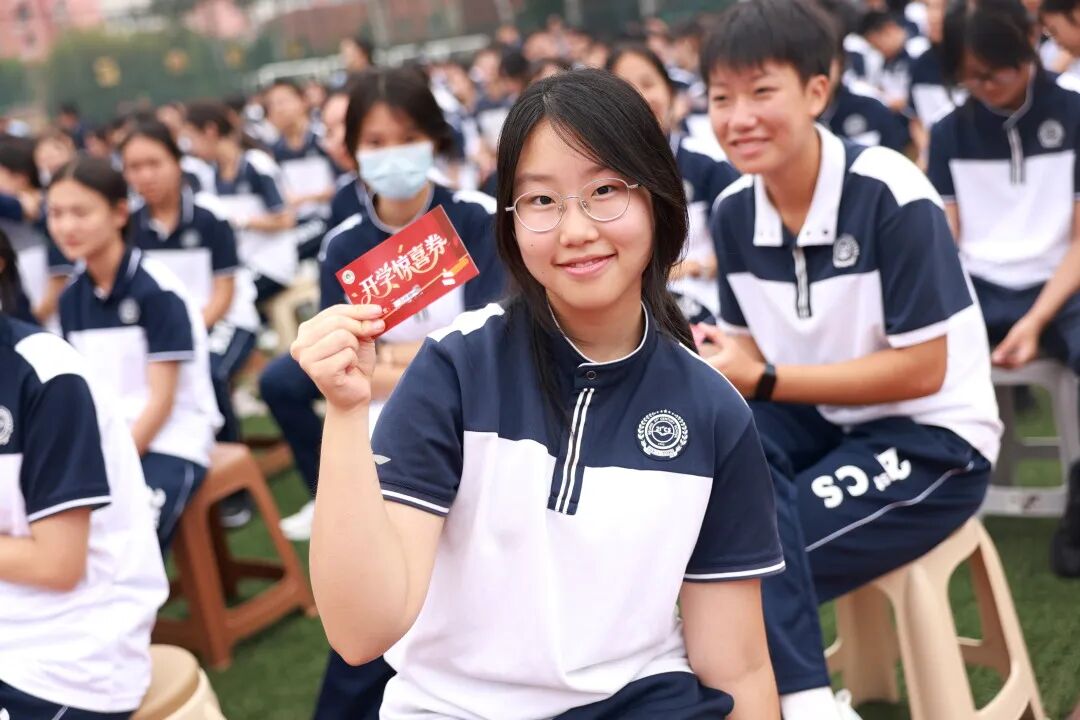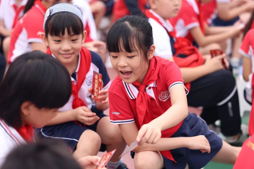 免作业券、校长有约餐券、体育用品券、文具券、午餐券、小吃券、吉祥物券、饮料券、零食券,甚至还有“间操管理员体验券”!同学们边拿边感叹:“这波操作,直接泪目了!”