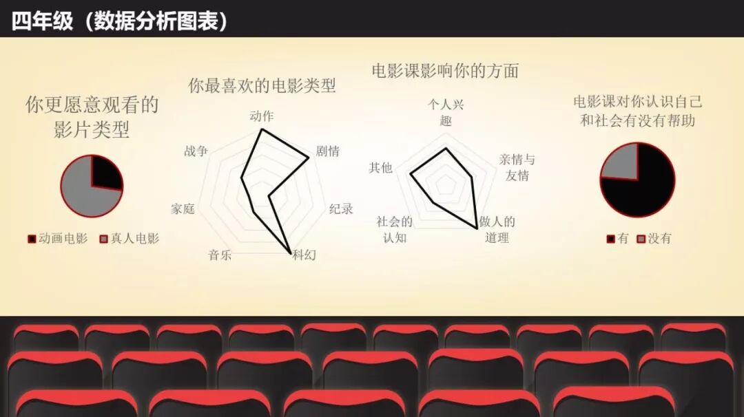 在开设电影课程的过程中,我们十分注重学生的需求和反馈,通过调查问卷的形式,深入了解各个学段学生的心理和认知特点,随时调整电影和课程设置。