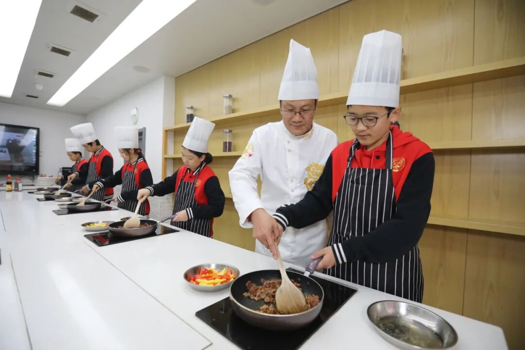 2014年,厨艺课在我校分学段开设起来,这门课程不仅普及了中华传统美食文化,也是一种非常接地气、实用性很强的劳动教育。我校高三学子即将毕业出国深造,走出国门之前,他们已经掌握了基本的烹饪技巧,能够独立生活,还能通过做几道美味的中国菜拉近与国外同学的距离,传播中国博大精深的饮食文化。