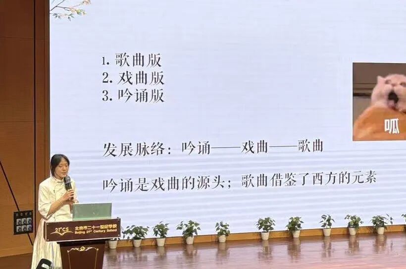 在学生讲堂上,李佳茵与同学们详细解说并展示了华调,戴调与国子监诵念调吟诵,分享了她自小学以来的吟诵经历,讲解了吟诵的主要原则。同时她还教会同学们一首简单的华调五言仄起仄收格律诗。