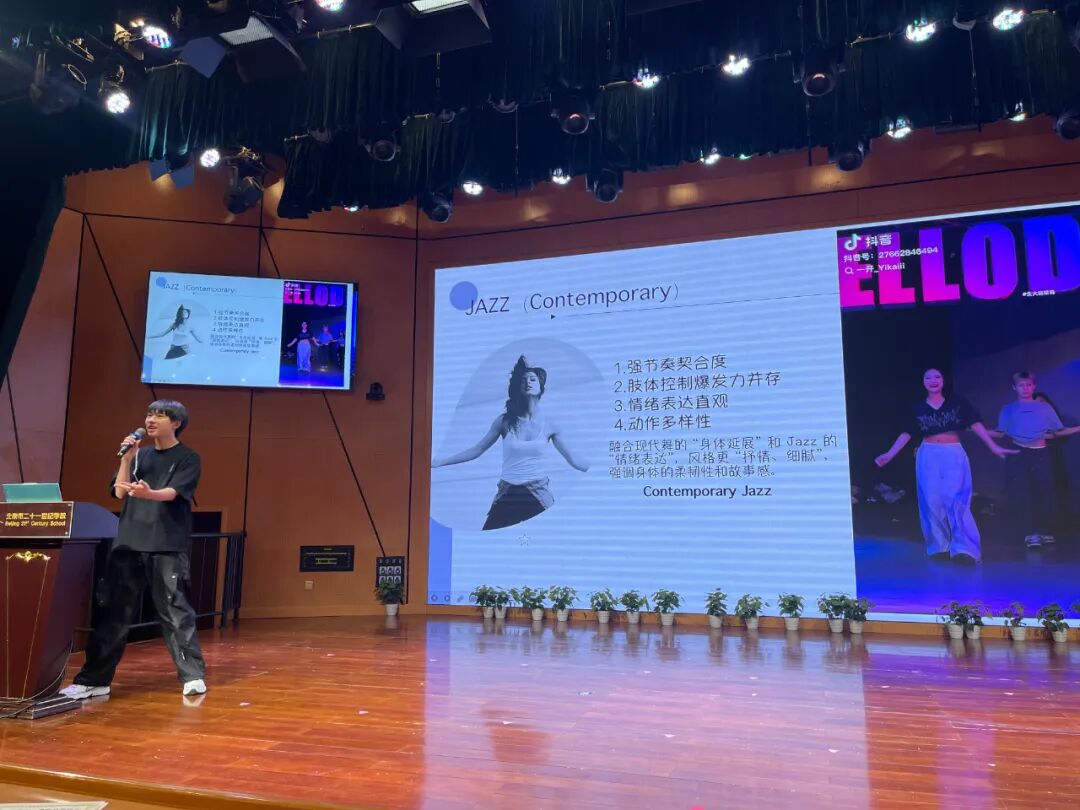在本次学生讲堂,侯鉴桁以Jazz/hiphop/Afro为切入点,为同学们讲解了关于常见舞种的基础知识与每个舞种之间的区别,并现场与朋友们展示了一曲舞蹈,让同学们现场体会到了舞蹈的魅力与感染力。