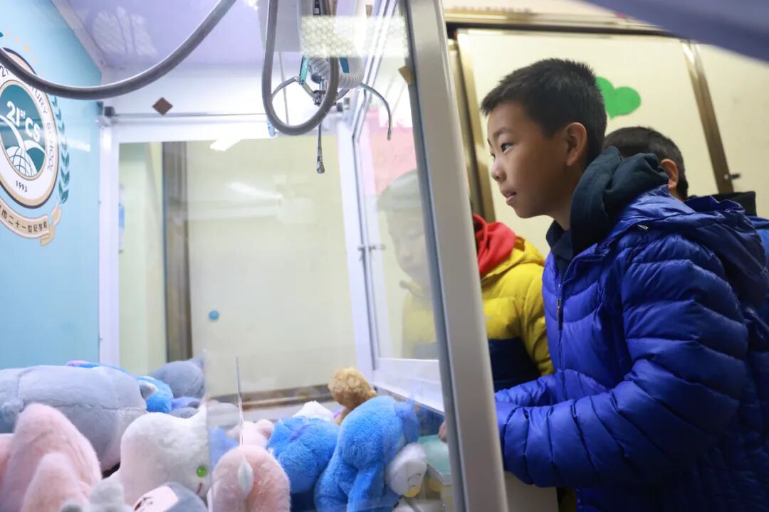 很多孩子都曾在商场的抓娃娃机前挫败而归,眼巴巴看着玻璃框里五颜六色的娃娃却抓不住。(悄悄告诉你,那机器商家都能自己调节哦!)我们小学这款娃娃机经过老师精心“调教”,能一次弥补你久抓不中的遗憾!抓一次20分,只要不出意外,都会有意外的惊喜!没抓到也别失落,还可以去5分积分卡奖品区任选一件当纪念品。