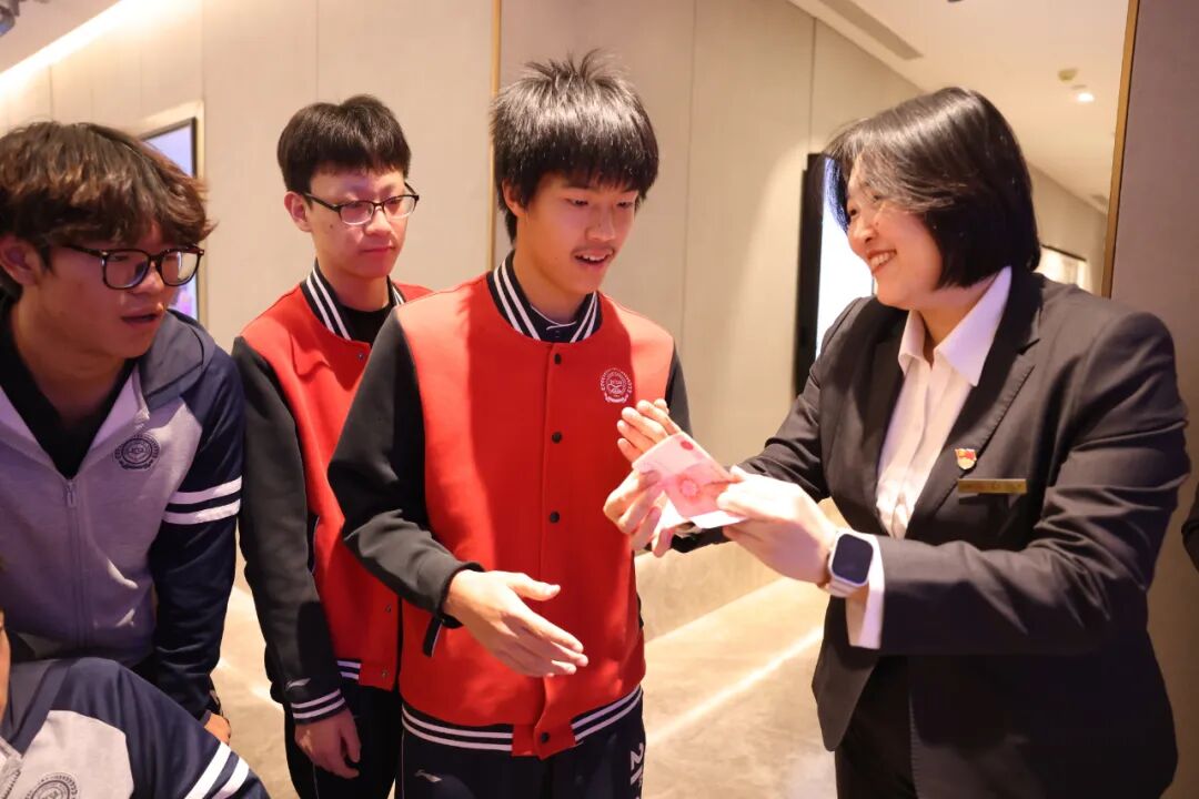 在这个环节,同学们在老师和工行职员的引领下,走进银行最基础最核心的日常操作,了解是什么支撑起金融服务的日常,银行里那些看似平凡、重复的操作,背后又蕴含着怎样的专注与坚守。