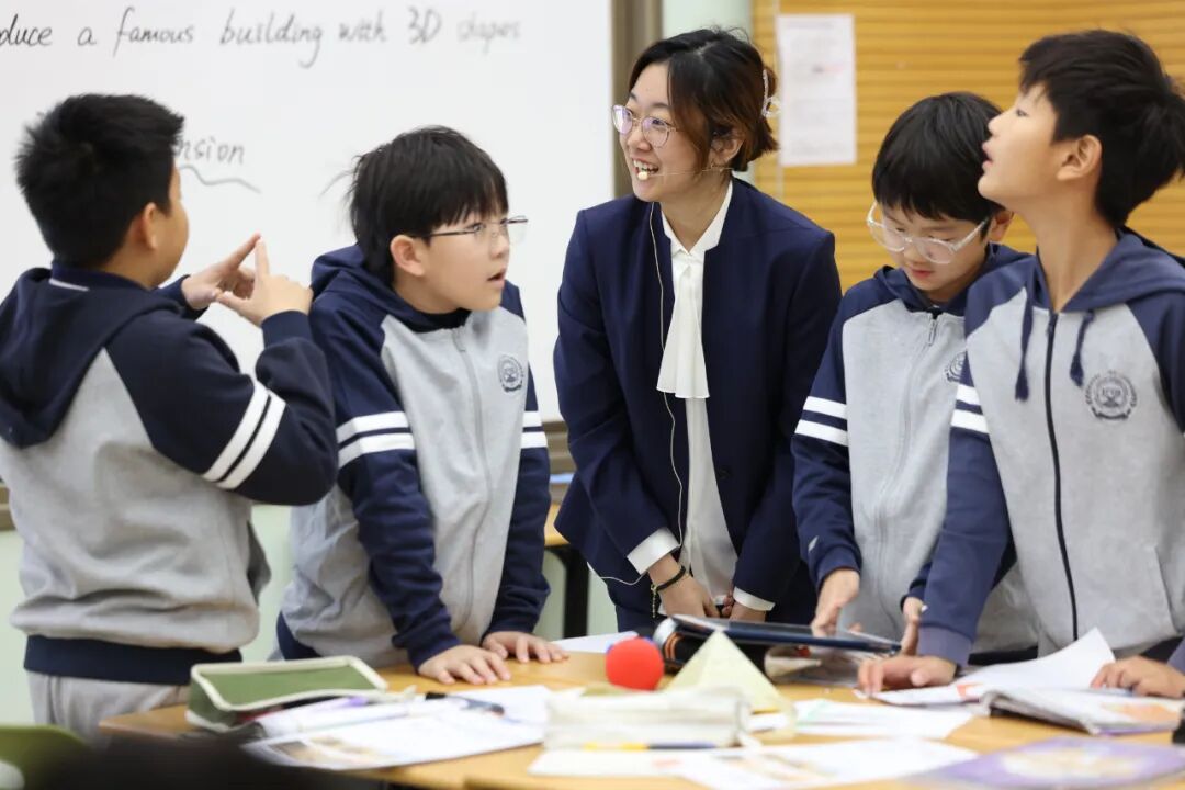 王老师以任务为驱动,从提问金字塔的形状出发,引导学生从2D 图形过渡到3D 图形的认知。课堂活动中,学生们是主体,老师则扮演着引领和组织的角色,多层次的学习活动贯穿始终。同时,这堂跨学科融合的英语课将数学和英语阅读理解、语言输出很好地结合在一起。通过这堂课的学习,学生能够从几何特征、国家地理位置、建造者、材质等角度用英语描述一座建筑,并通过欣赏世界和中国特色建筑,开拓文化视野,树立文化自信。