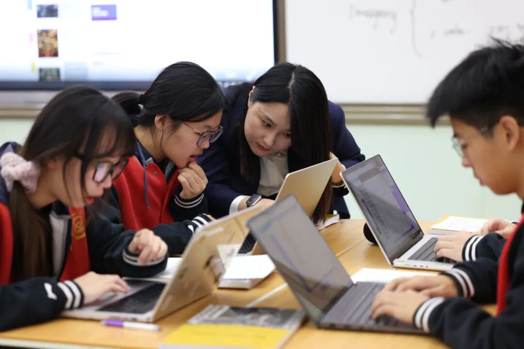 课堂上,老师们巧妙运用AI 辅助教学,让课堂展现形式更加丰富,学生间的合作交流更加亲密。课程产出也更加多样化。