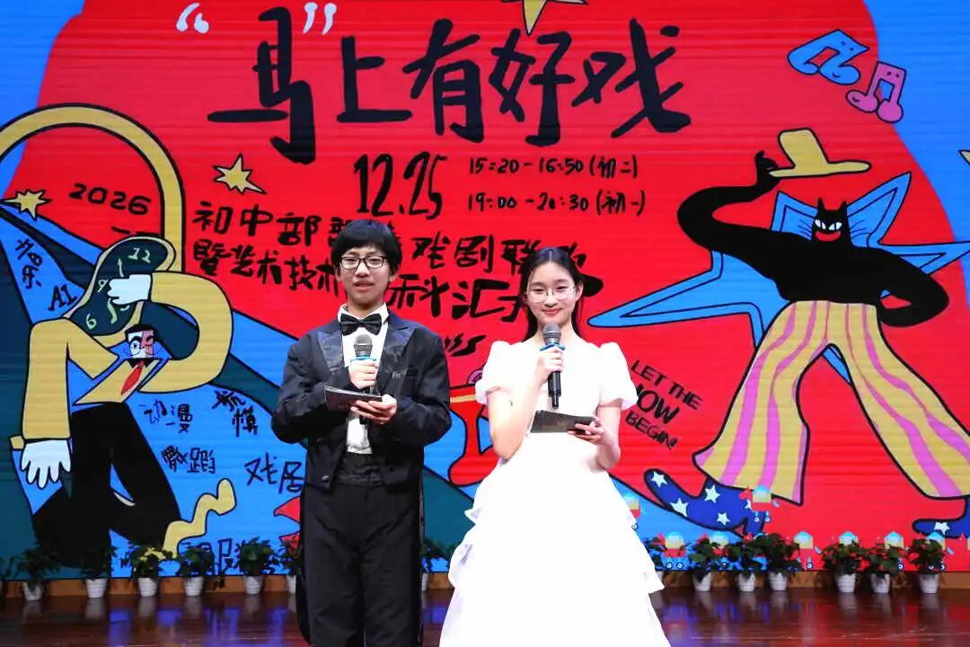 聚光灯亮起,舞台帷幕拉开,初中部名为“‘马’上有好戏”的学科创意盛宴在这里上演,下午、晚上两场精彩放送让大家意犹未尽。