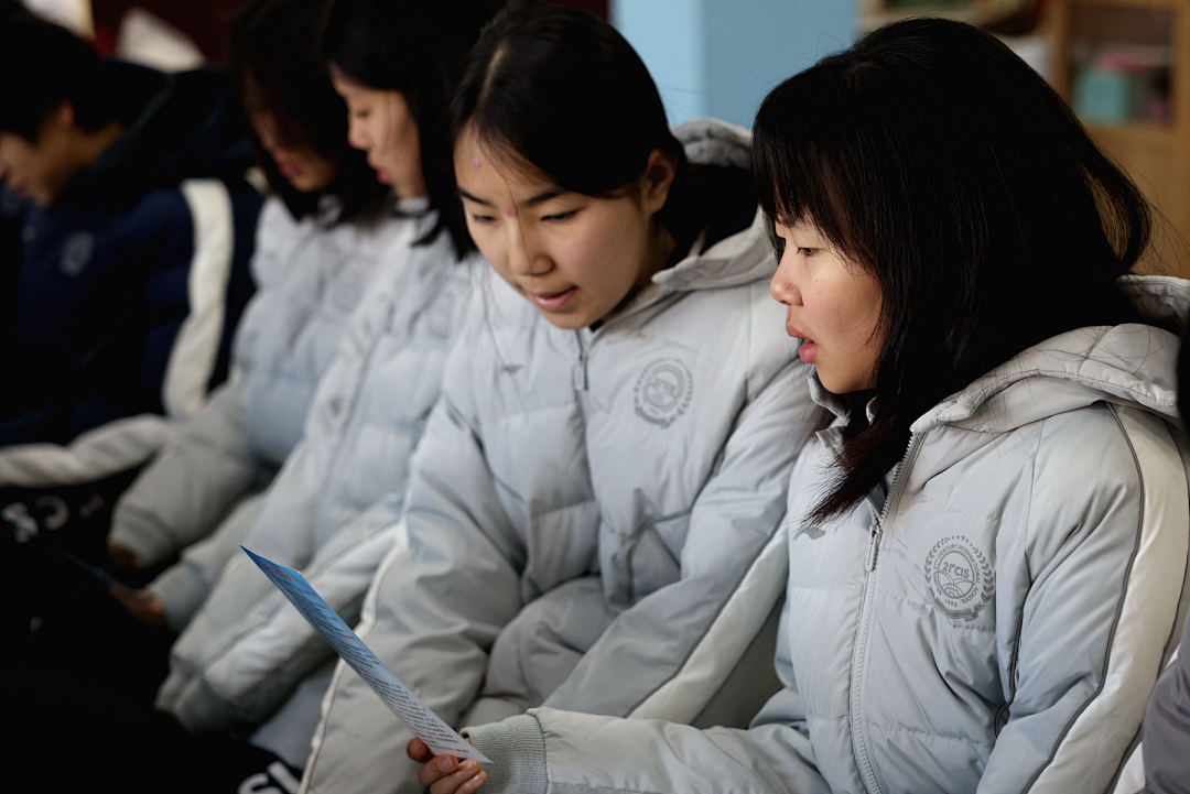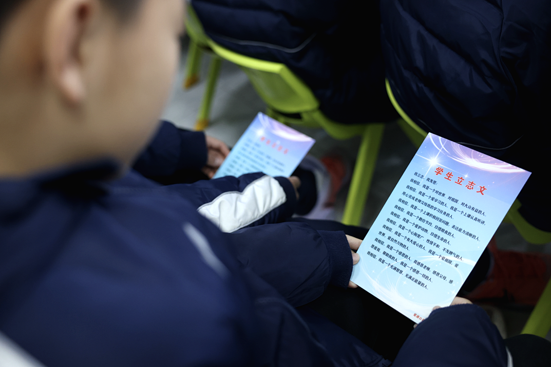 随后,在布置温馨的活动室里,同学们与中心的孩子们并肩而坐,共同诵读了《学生立志文》。一些听障孩子虽然无法清晰跟读,却专注地看着身旁同学的嘴型,努力用手比划着文字的轮廓;而语言能力较好的孩子,则一字一句、认真地跟着朗诵,声音稚嫩却充满力量。