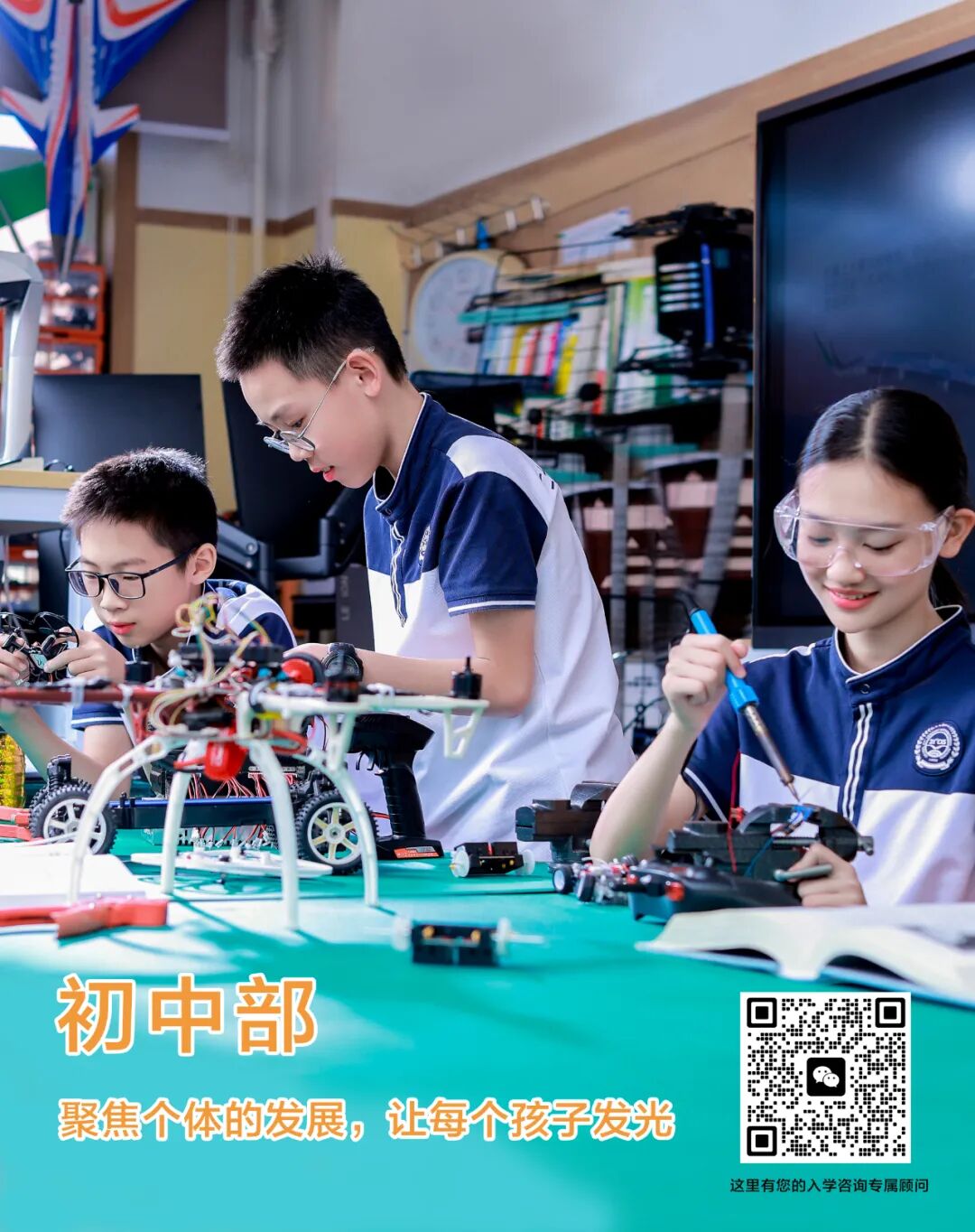为提升学生创造力和科研潜质,我校与中科院合作开展“未来科学家”项目,涵盖AI计算机、金融统计、机械无人机、生化医疗和经济管理领域。