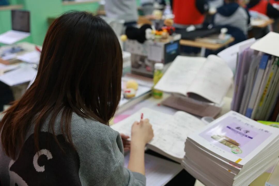 伏案备课、批改作业、俯身指导,他们把知识化作星光,把耐心融进日常。