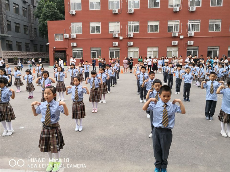 为培养学生竞争意识、协作精神,增强学生集体荣誉感,进一步推进学校阳光体育工作的蓬勃发展。一年级组还紧紧抓住开放日这一契机,举行了“七彩阳光”广播操比赛。随着轻快、悦耳的广播操音乐响起,同学们意气风发、精神抖擞,一伸展,一抬足,一招一式都那么刚劲有力。家长们兴致勃勃地观看着学生的广播体操,掌声阵阵,赞叹声不绝于耳。为了这友谊比赛更公平,更能促进提升,还邀请了家长评委进行评分呢!瞧,我们的评委们多么认真、专注!