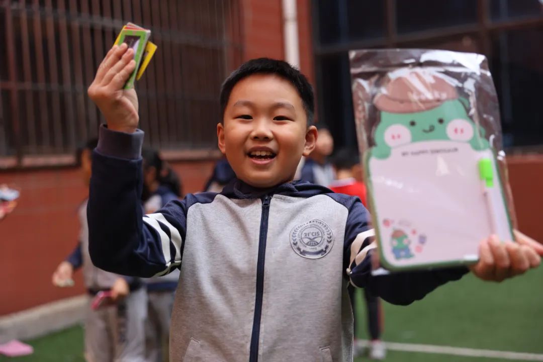 王老师:皮皮早就开始期待三年级的这次积分卡兑换活动了,因为他有一个心仪的礼物要兑换——百变魔方。上次兑换时,这小玩意儿太火爆,他没抢上。这段时间,他上课认真听讲、积极发言、运动热情高涨,还主动帮老师干各种力所能及的活,挣了一百多分积分卡,各方面行为习惯也更好了。你们快看!这群“农民伯伯”丰收的喜悦洋溢在脸上。通过自己的努力挣来的奖品格外喜欢!
