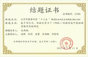 1、我校承担的北京市教育科学“十三五”规划2019年度校本研究专项课题《基于项目式、体验式学习下(PEBL)的国际高中英语教学实践研究》,于2019年立项,2023年顺利结题。